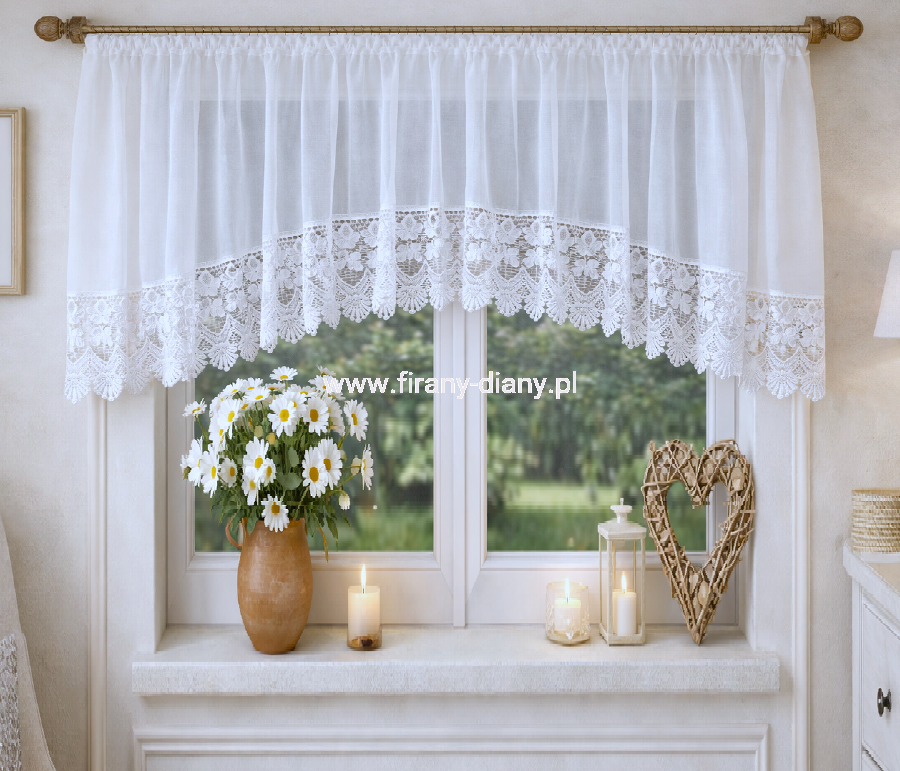 Lambrekin z gipiurą to praktyczna, lekka i stylowa dekoracja okienna, która zapewnia dostęp do światła a jednocześnie podkreśla charakter wnętrza.