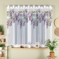 Firana balkonowa gotowa FIOLETOWE KWIATY - wsuwana na karnisz
