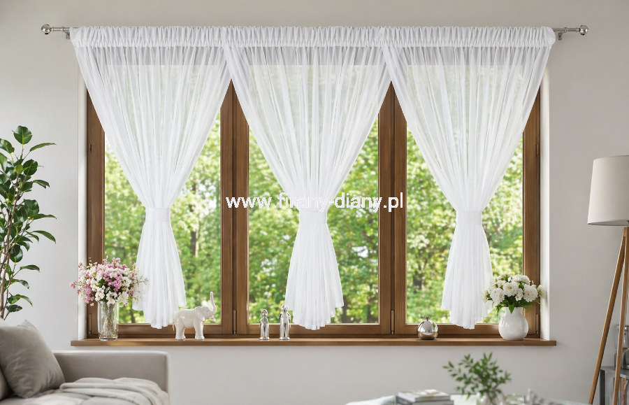 - Styl: firana upięta w 3 dekoracyjne kokony