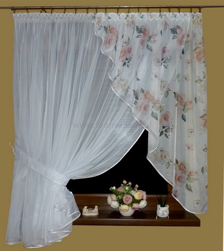 Do kompletu dołączona szarfa i tubka do upięcia firany.