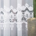 Firanka żakardowa prezentowana na zdjęciu to klasyczna i ponadczasowa dekoracja okienna, która doskonale wpasuje się w każde wnętrze – od tradycyjnego po nowoczesne. Wykonana z lekkiego, półprzezroczystego materiału żakardowego, pięknie rozprasza światło, tworząc we wnętrzu przyjemną, miękką atmosferę. Dolna część firany zdobiona jest efektownym, gęstym wzorem koronkowym w postaci delikatnych ornamentów roślinnych. Ażurowe detale nadają całości elegancji i subtelnego charakteru.