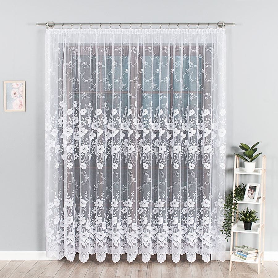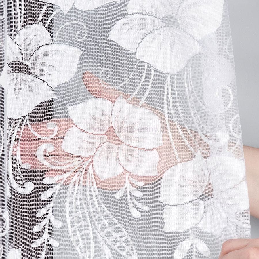 Firana żakardowa nr 018041 w kwiaty szyta na taśmie - różne szerokości