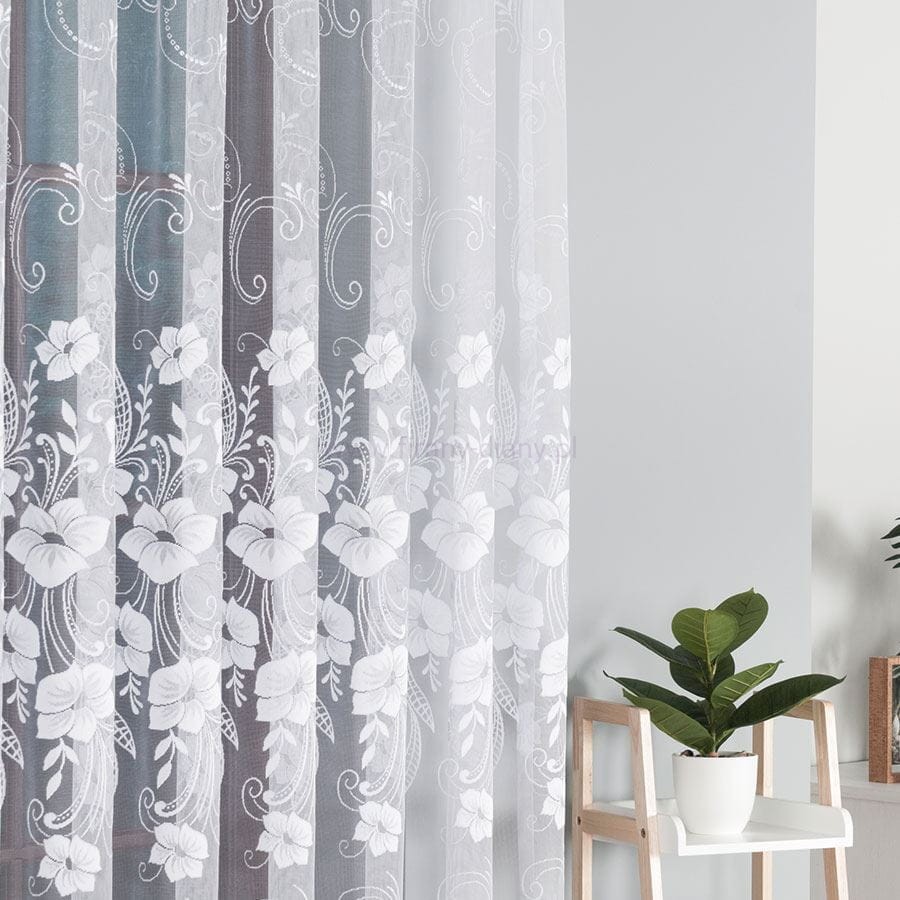 Firana żakardowa kwiaty 018041 - na taśmie