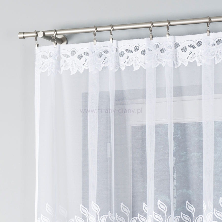 Firana w kolorze białym do wieszania na żabki.