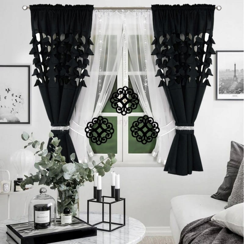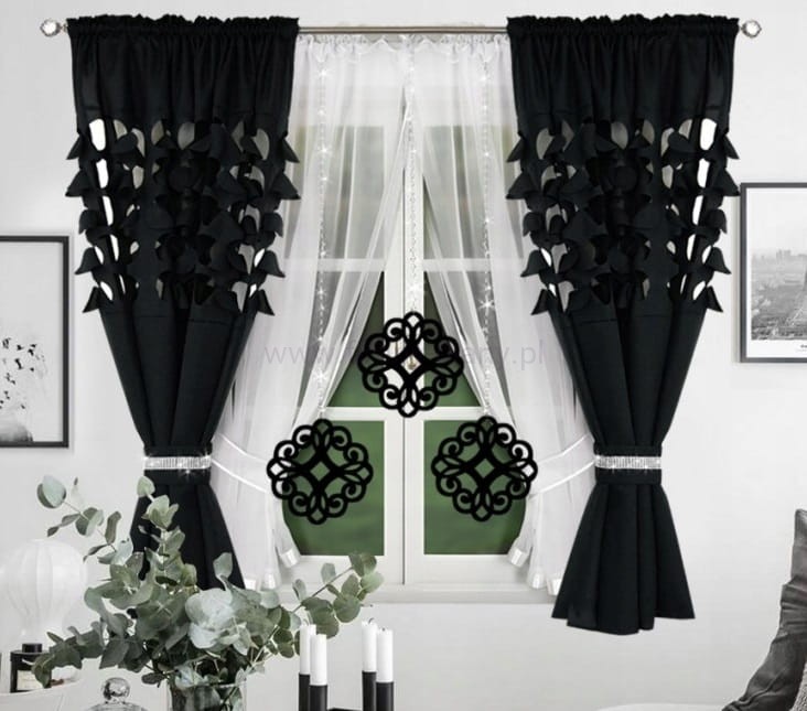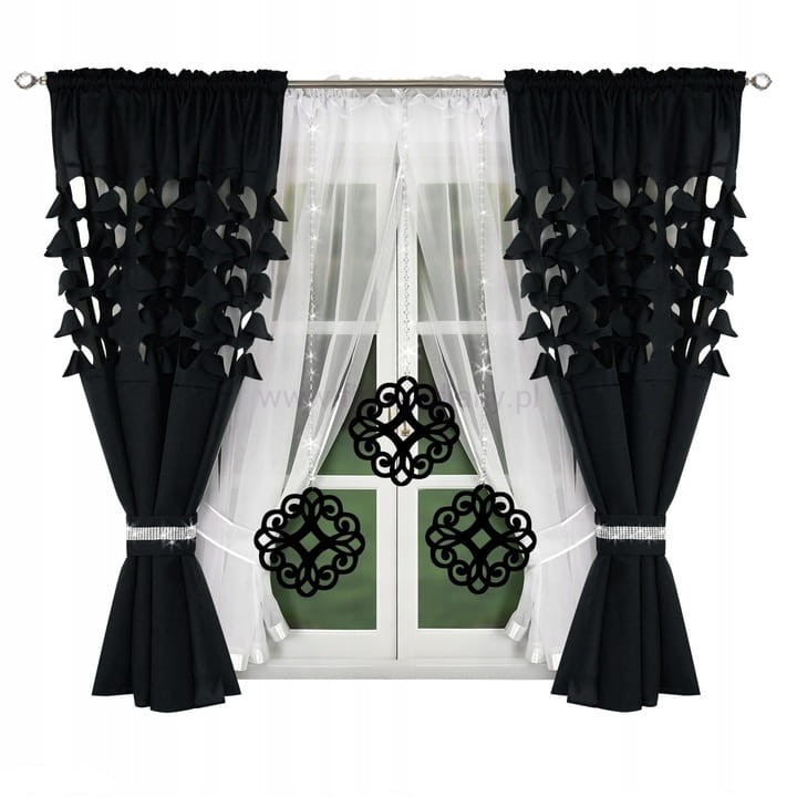 Komplet, czarne zasłonki, firany, ażurowe zawieszki 400x160 cm