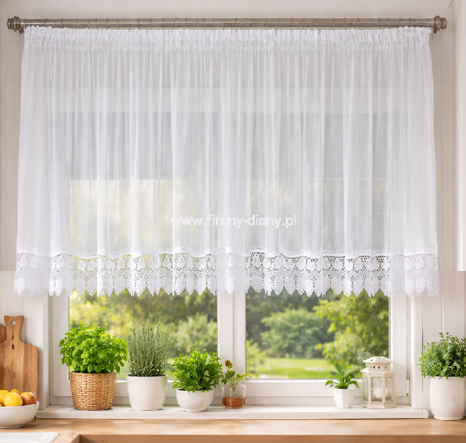 Krótka firana do kuchni 350x110 cm - gipiura 10 cm