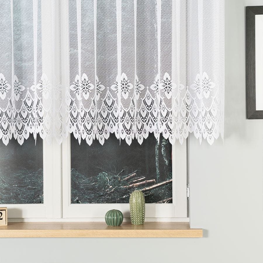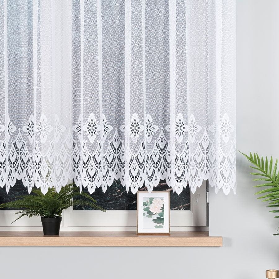 Firana żakardowa z wzorem na dole – biała 400x120 cm