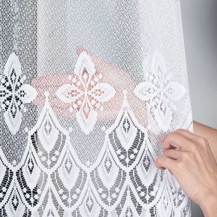 Firana została wykonana z wysokiej jakości tkaniny żakardowej, która nie wymaga prasowania, pięknie się układa i jest wyjątkowo praktyczna w codziennym użytkowaniu. Dół wykończony laserowo wytapianym wzorem nadaje całości elegancki i estetyczny wygląd.