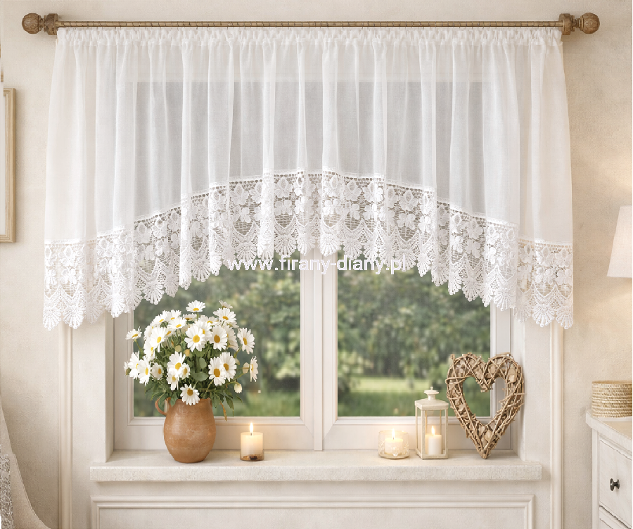 Krótka firana woalowa Lambrekin – elegancki łuk z gipiurą 20 cm