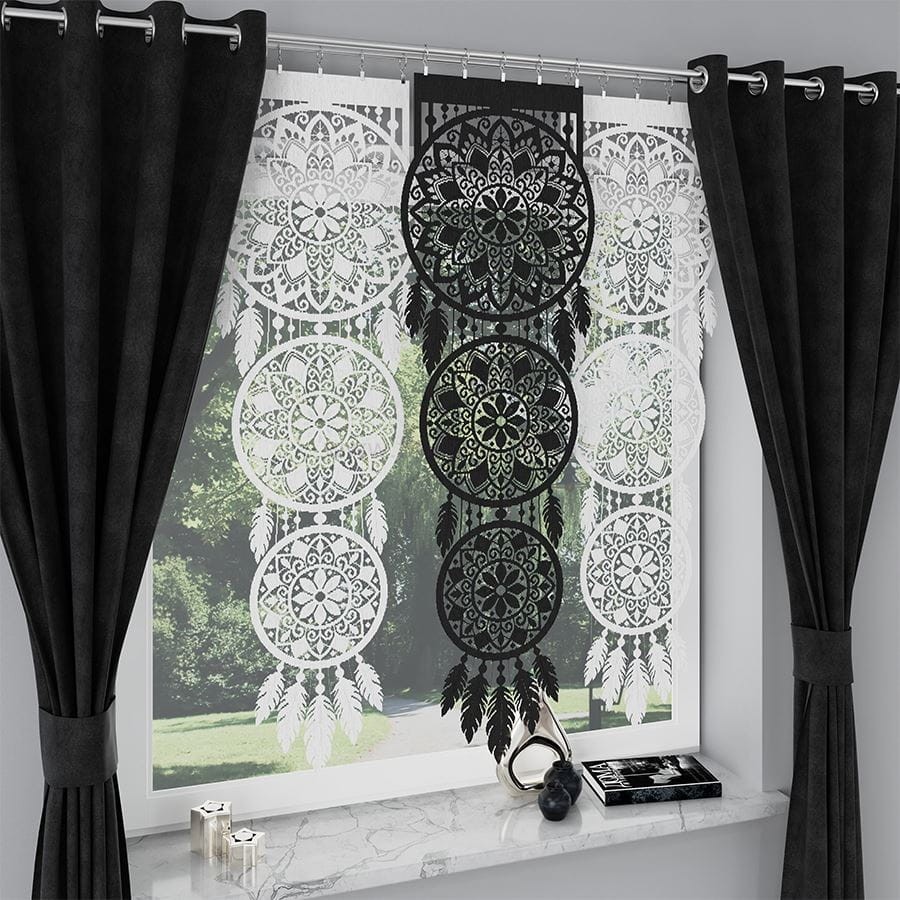 PANEL CZARNY ŻAKARDOWY ŁAPACZ SNÓW 43x140 cm
