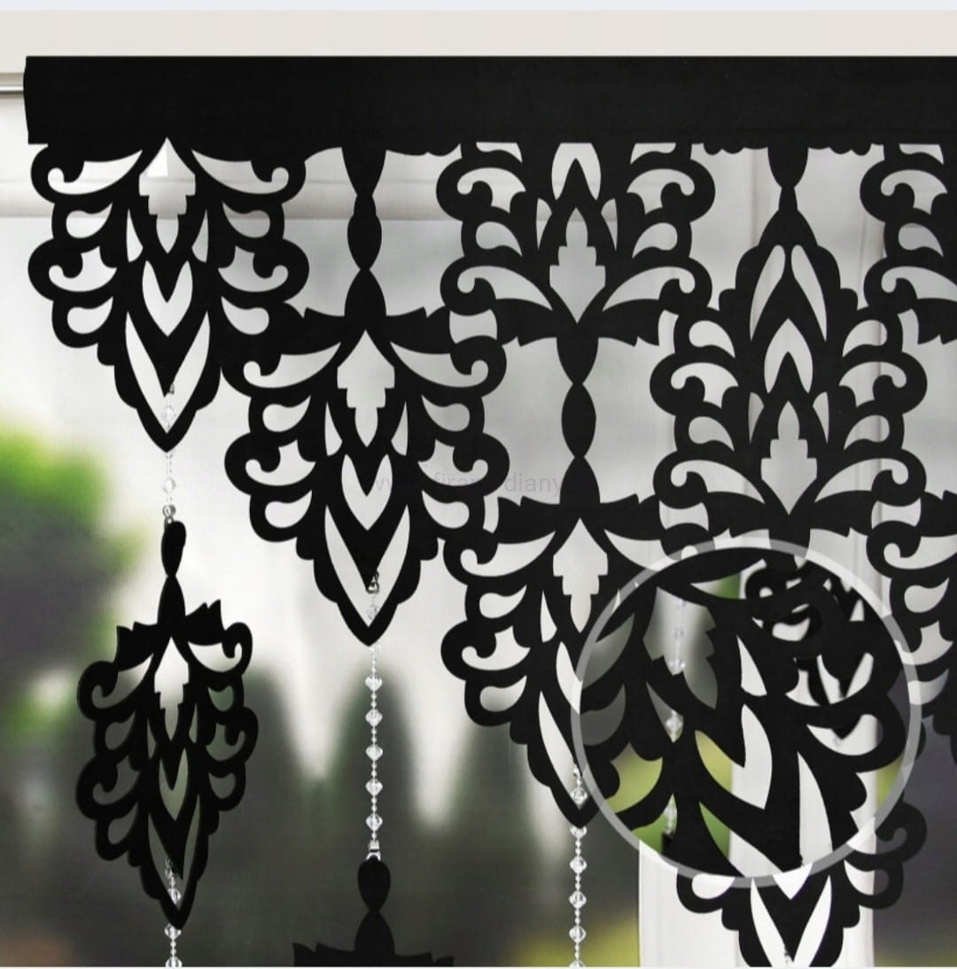 Stylowy panel ażurowy z filcu z pięknym wzorem oraz zawieszkami na koralikach. Panel można wsunąć na karnisz rurkowy lub powiesić na żabkach. Panel wykonany z grubego filcu.