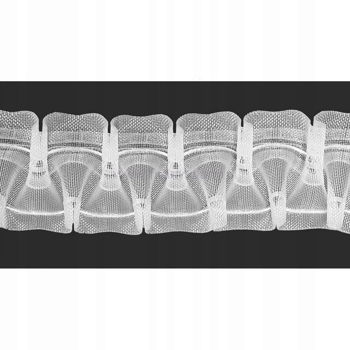 Porządna taśma, przezroczysta, tak że po wszyciu jest prawie niewidoczna. Na dodatek ma dwa rzędy z kieszonkami, dzięki czemu mogłam moją firankę powiesić o 2 cm wyżej.