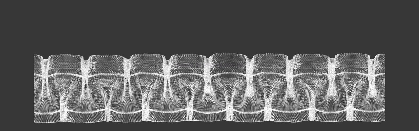 Taśma marszcząca typu smok o szerokości 5 cm, marszczenie 1:2,5, Taśma transparentna, posiada dwa rzędy z kieszonkami na haczyki (haftki)
