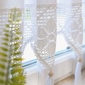 Biała zazdrostka bawełniana z szydełkowym wzorem Rachel 200x90 cm - frędzle, koraliki