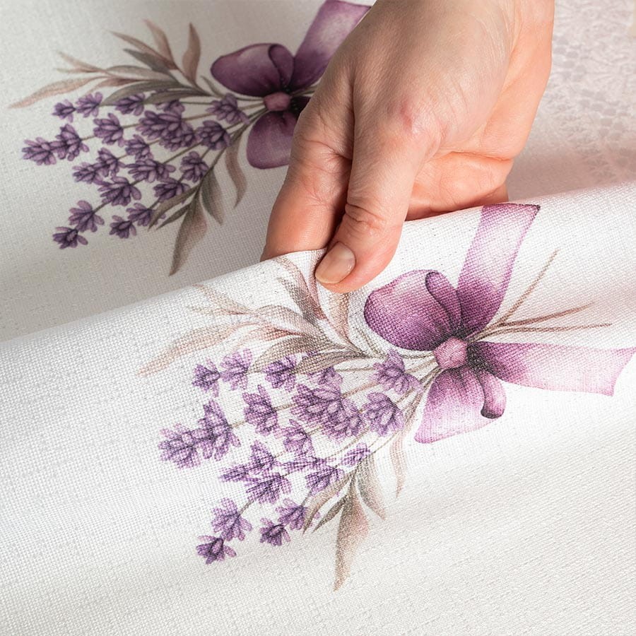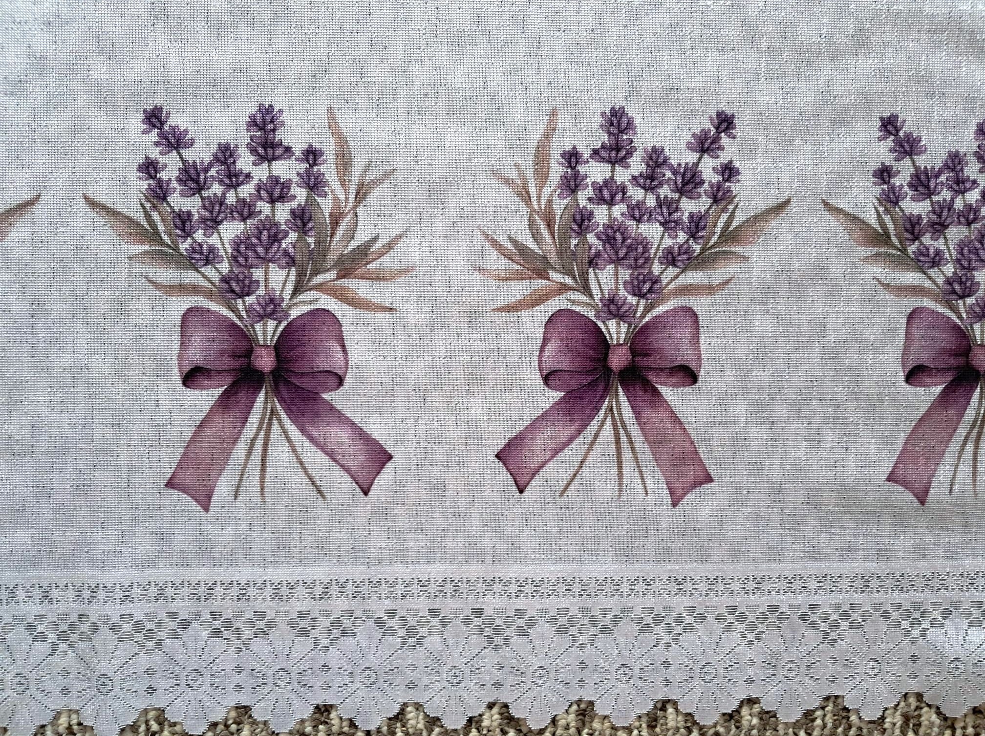 Zazdrostka żakardowa w malowany wzór lawendy, sprzedawana na metry. Zazdrostka do wsuwania na patyczek. Zazdrostki w malowane wzory pięknie dekorują okno, nadając niepowtarzalny charakter każdemu pomieszczeniu.