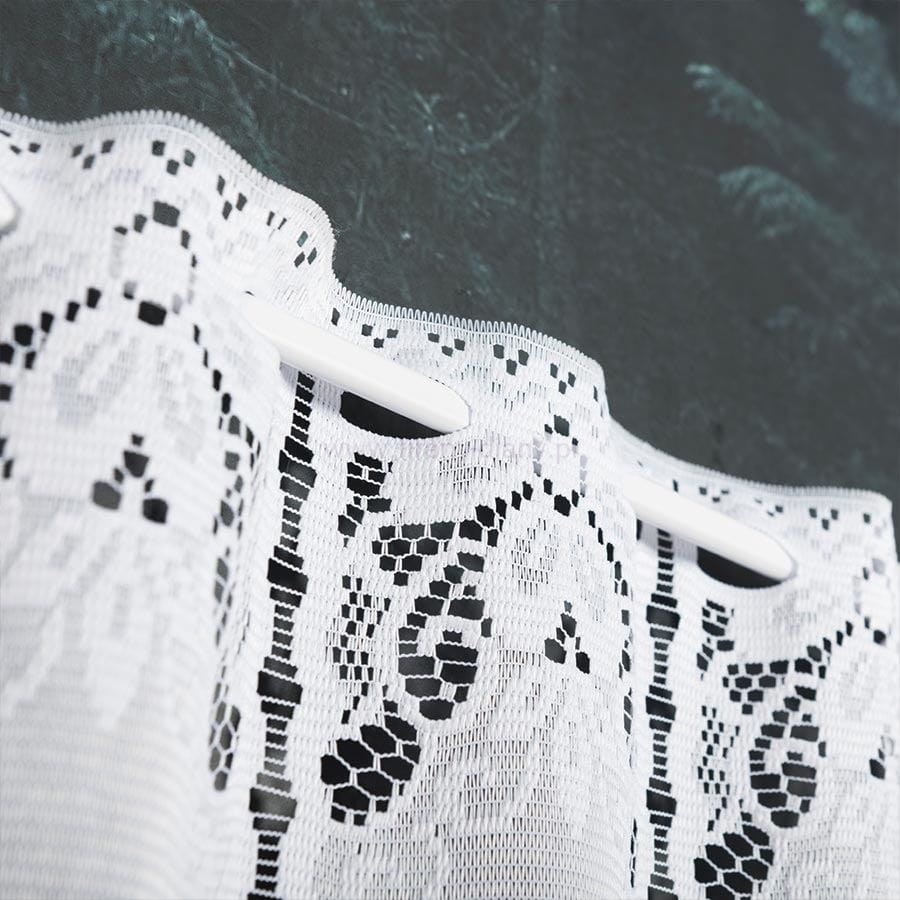 Firanka przeznaczona do wsuwania na patyczek, bez potrzeby obszywania. Dzięki sprzedaży na metry łatwo dopasujesz ją do indywidualnych wymiarów okna.